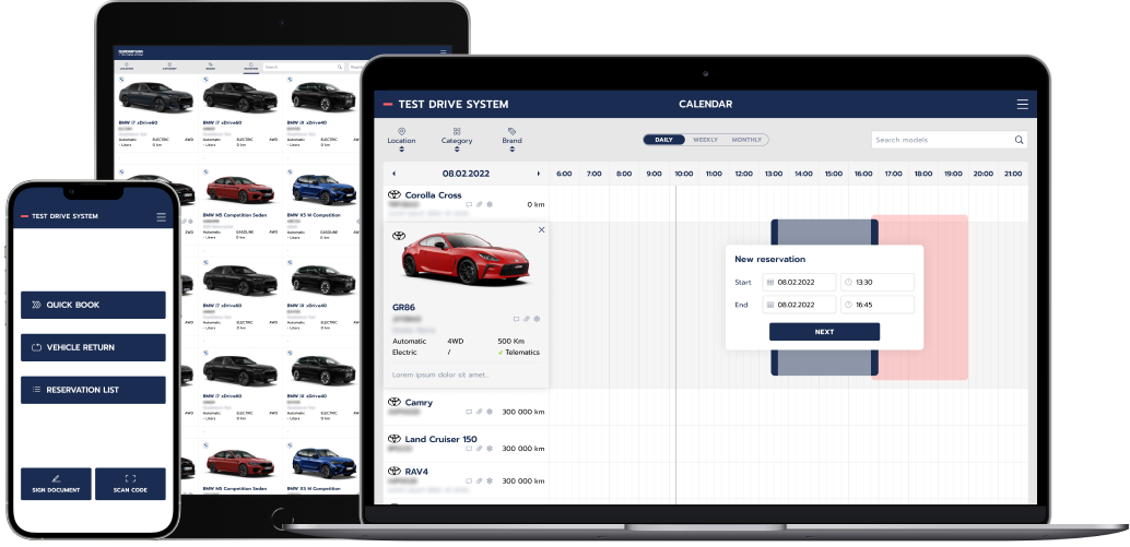 TDS Connected is integrated both internally and externally, allowing a seamless experience with your sales team and customers. It also offers the option to add online bookings to your website, enabling interest collection beyond on-site test drives.